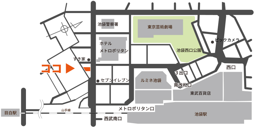 JR池袋メトロポリタン口 徒歩3分/西口 徒歩5分 東武東上線池袋駅 南改札口 徒歩3分 東京メトロ池袋駅 3番出口 徒歩3分 西武池袋線池袋駅 西武南口 徒歩3分 JR山手線目白駅 徒歩8分 池袋バランス力学整体院 近所の風景 ホテルメトロポリタンを目指してください。 カツマタビル7階が当整体院です。